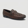 The entire shoe is crafted from an intricate basketweave (or woven) pattern, giving it a rich, dimensional quality that is both classic and unique. The deep, burnished finish of the material enhances the textured look, creating a sense of depth and luxury.